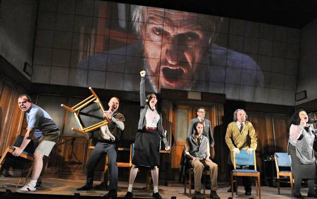 The whole production can be thought of as a series of highlight scenes from the book all stylistically directed to maximise its impact while not necessarily having a continuity of tone and pace. Though some are effective, such as the two minute hate scene. The video camera is perhaps overused as once it has served its significance in surveillance and monitoring, creates a sense of disengagement for a live theatre production.