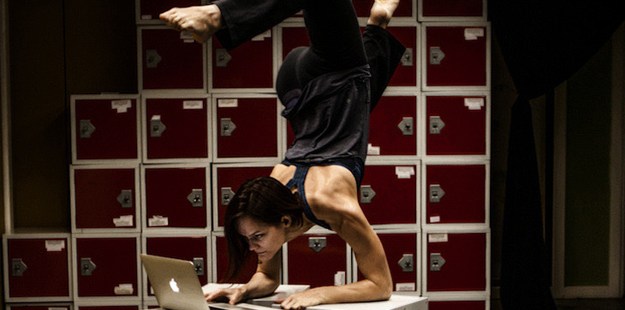 The first show right next to the entrance is Circumference in which Nick engaged me in conversation while looking through some photographs on my phone. We proceeded to roll over each other along the floor while being filmed and continuing our conversation. Some phone photo inspired dance movement followed and some hula-hooping broke out by another dancer. The highlight was brilliant moment involving an audience member invited to dance with her and the hula hoop flew off down the atrium to floor below. But otherwise, it is attempting a tangential link between technology, telecommunication and modern dance which I was too involved in the rolling to work out properly.