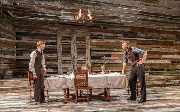 The adaptation by Brian Friel is snappy and the philosophical debates are especially exciting. Though the condensation of the plot can feel a bit abrupt especially in the second half but the beautifully moving ending ensures it ends on a high. Importantly, the exploration of the relationships between the fathers and sons is concrete and provides a grounded commentary on the subject. The design by Rob Howell, similar to his previous work in Philadelphia Here I Come at the Donmar, uses angular wooden planks to exaggerated perspective and adds depth of the stage. Though it was effective for the previous production, it is overly fussy and gimmicky here and jars with the period of the piece.